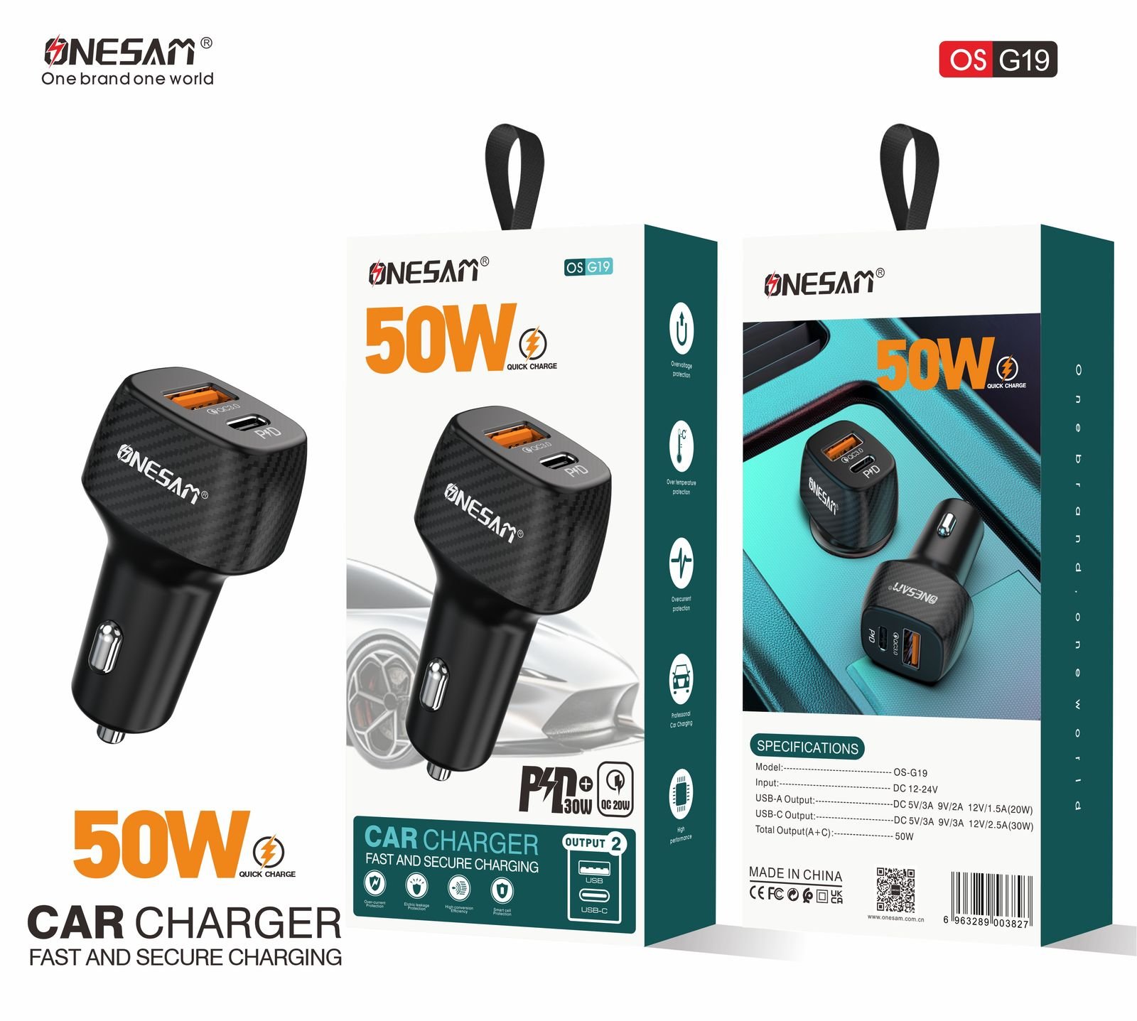 Onesam Car charger 50W PD30W + QC 20W (OS-G19)