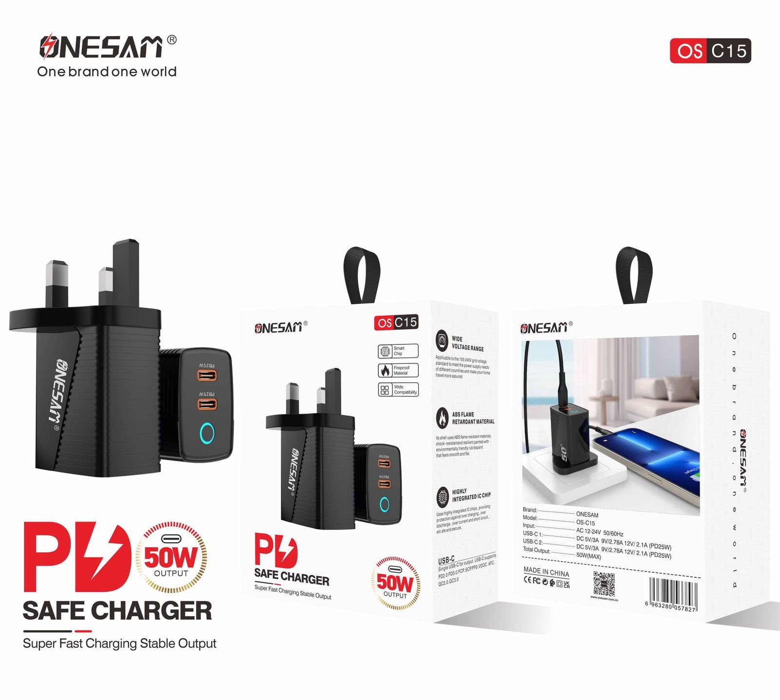 Onesam PD safe charger 50W output 2 TC (OS-C15)